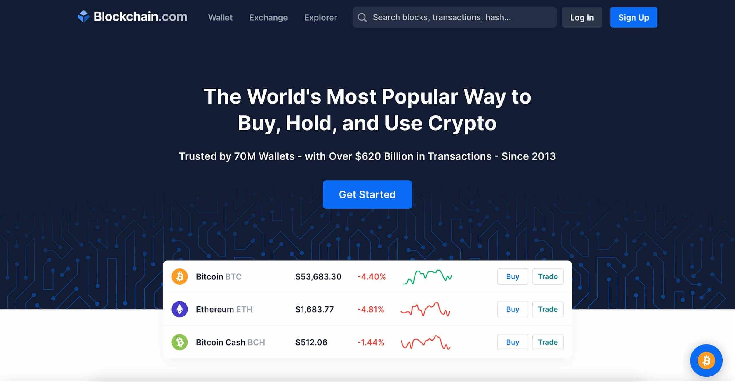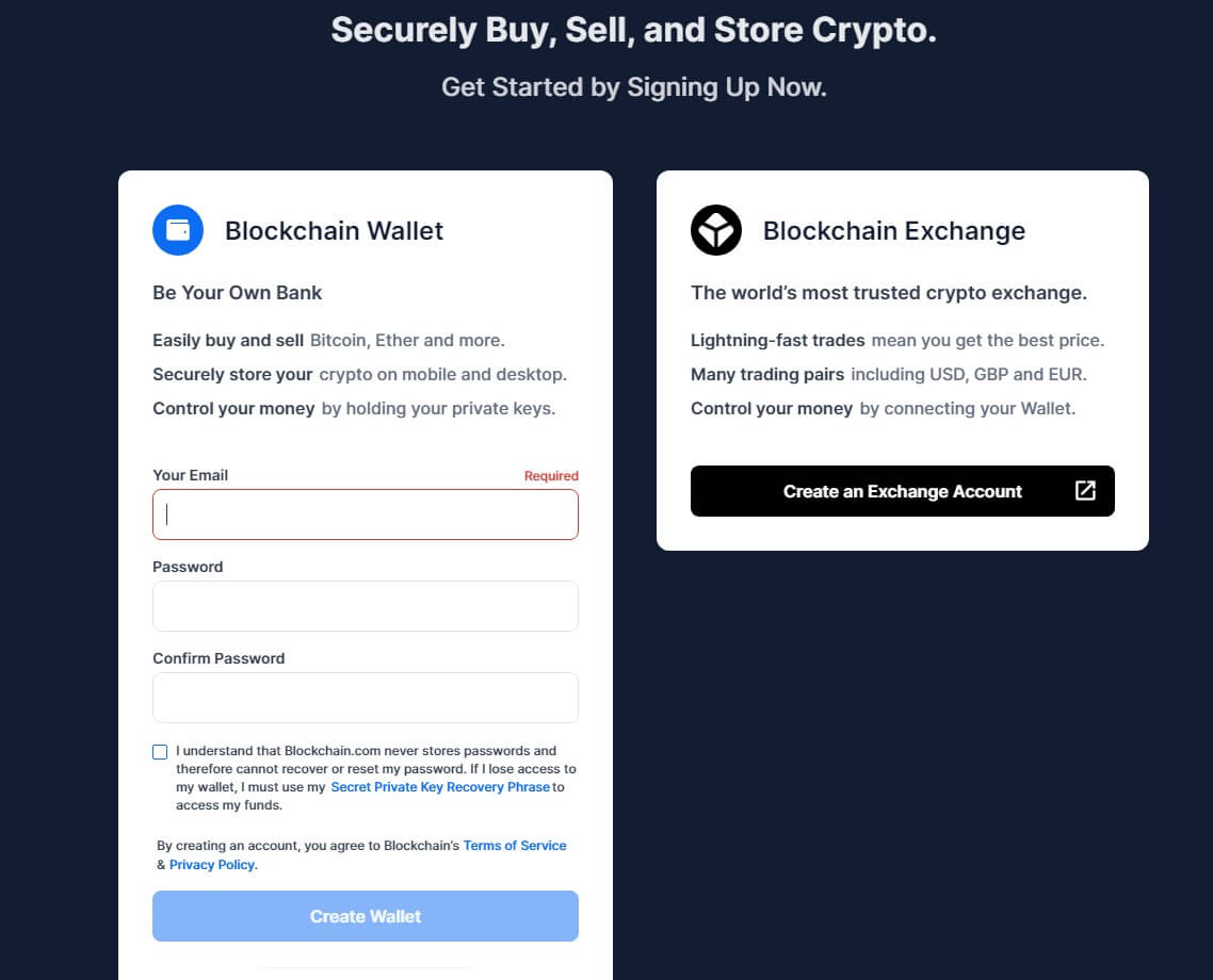 Blockchain.com — пожалуй, самый популярный криптокошелек на сегодняшний день. Сервис был создан в 2011 году, а сегодня им пользуются люди со всей планеты. Blockchain поддерживает более 20 языков и 5 криптовалют. Это простой и удобный горячий кошелек, с понятным интерфейсом и быстрой регистрацией, которая занимает пару минут.